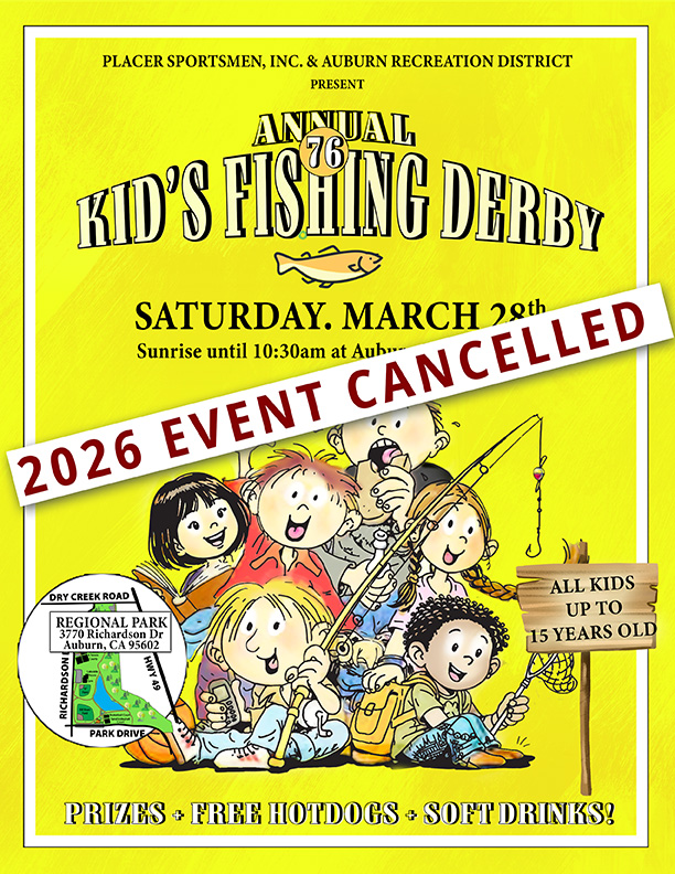 The FREE Fishing Derby is on Saturday, March 28th and starts at sunrise and runs until 10:30am. This fun event is for kids up to 15 years old and will take place at Regional Park (3770 Richardson Drive, Auburn).  All fishing gear will be provided and all kids will receive a free hat, hot cocoa, donut, and a hot dog!
